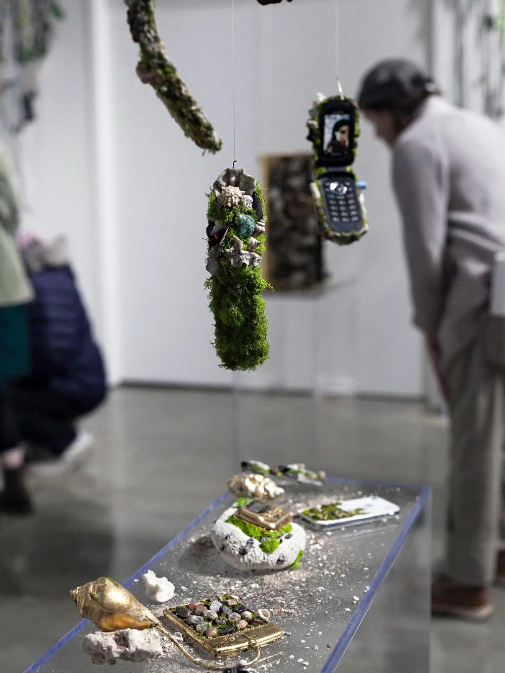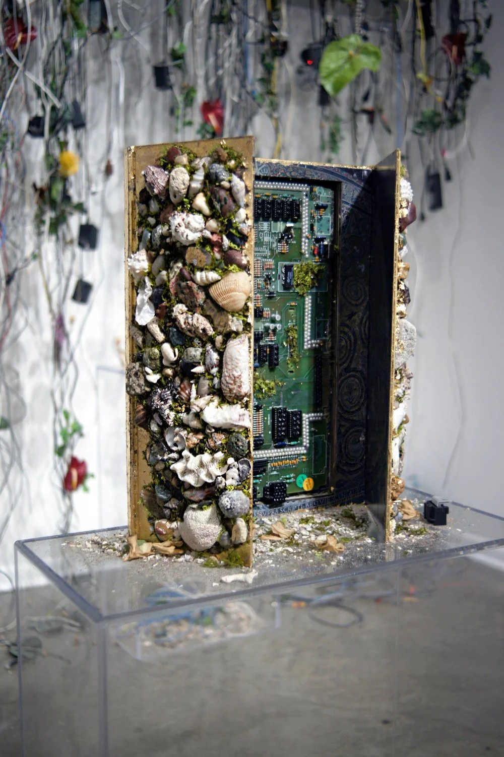 ‘Through the Looking Glass Darkly’ is an immersive installation in which contemporary modes of communication are fossilized and transformed into relics of a seemingly distant past. by placing the audience into 'the future', they are encouraged to reflect on today's society the same way an archaeologist does an excavated fossil.
